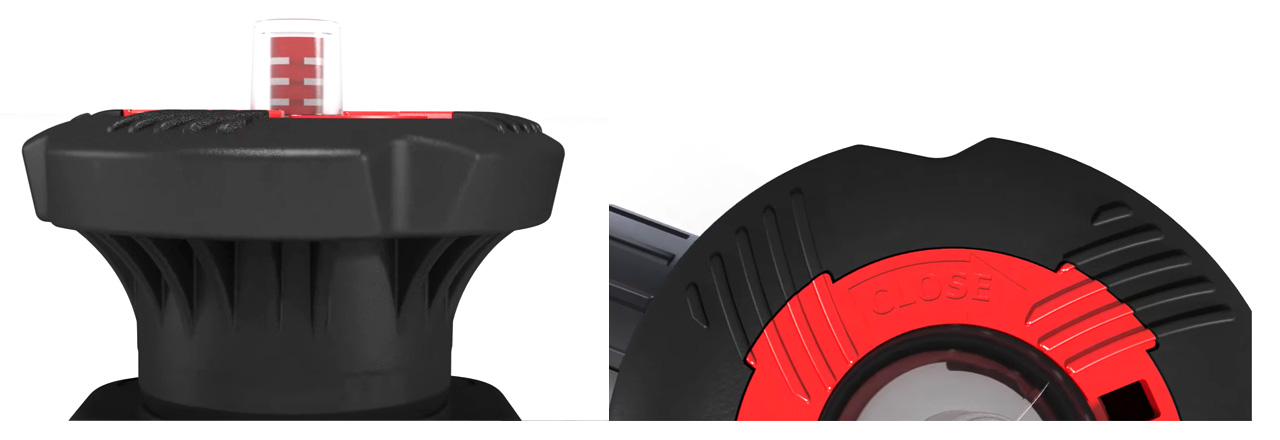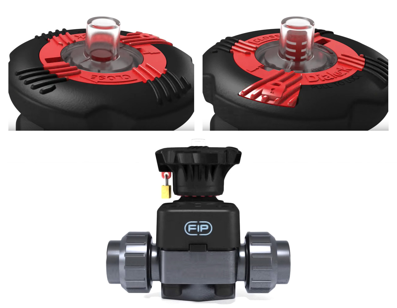 I colori brillanti e la grip danno un movimento grafico al pezzo comunicando anche a livello visivo l’apertura o chiusura del flusso. Il livello di apertura è indicato con chiarezza immediata al centro della valvola. Il nuovo sistema brevettato DiaLock consente il bloccaggio della valvola in oltre 300 posizioni.